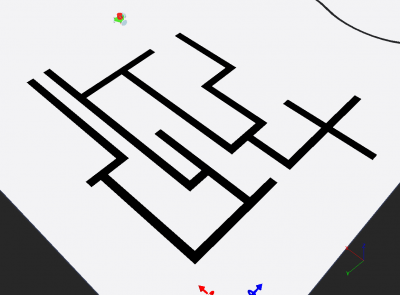 - Labyrinthe : il sera conçu à l'aide de scotchs noirs qui définiront le chemin. Il ne comporte pas de murs ni d'obstacles. Un code couleur permet de détecter une fin de route (scotch rouge) et le robot devra revenir sur ses pas ou un type d'intersection (3 branches : vert / 4 branches : jaune). Par défaut, le robot tournera tout le temps à droite (environ 90 degrés). Le point de départ n'est pas considéré comme une fin de route (détection de blanc).