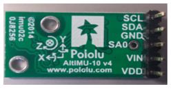 Pour obtenir des informations précises sur l’inclinaison de nos trois robots par rapport au plan de masse nous avons utilisé un capteur inertiel. Pololu altimu-10 v4 qui est une unité de mesure inertiel (IMU : Inertial Measure Unit). En effet le capteur comprend un accéléromètre 3D, un gyroscope 3D et un magnétomètre.