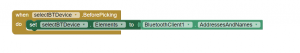 De plus, l'application doit communiquer en Bluetooth avec le robot donc nous ajoutons un boutons permettant de voir et sélectionner les périphériques connectés en Bluetooth disponibles. (cf. figure 6)